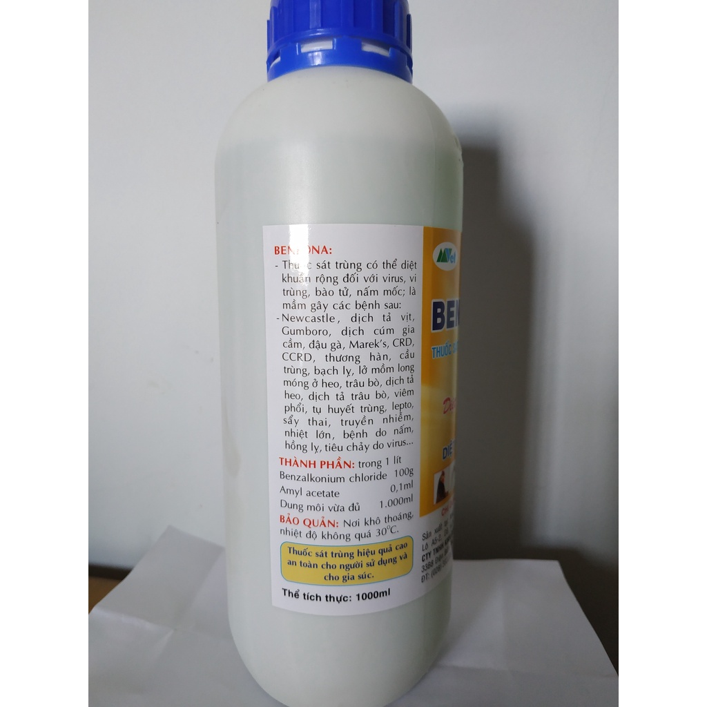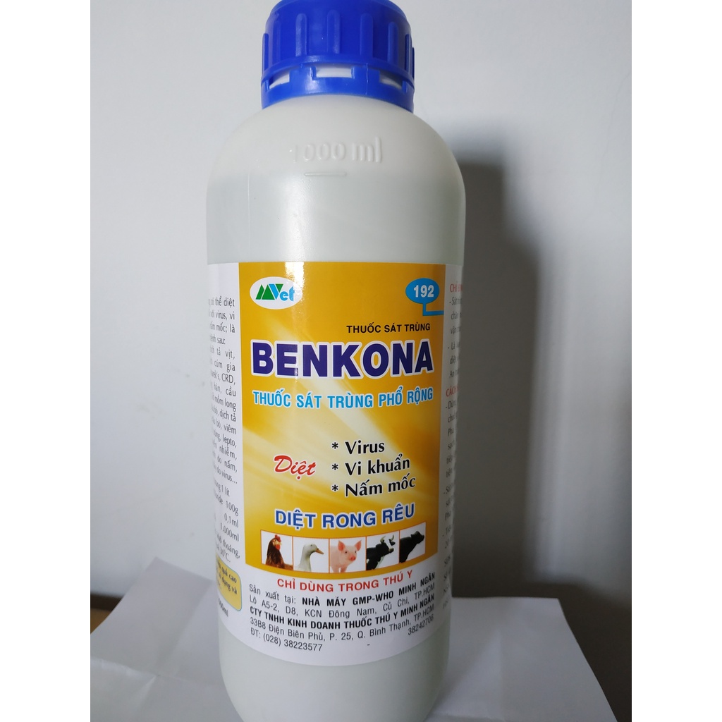 BENKONA TRỪ NẤM GIÁ THỂ CÂY TRỒNG - CHAI 1 LÍTTHÀNH PHẦN : Benzalkonium chloride : 100gram, Amyl acetate : 0.1ml , phụ gia vừa đủ