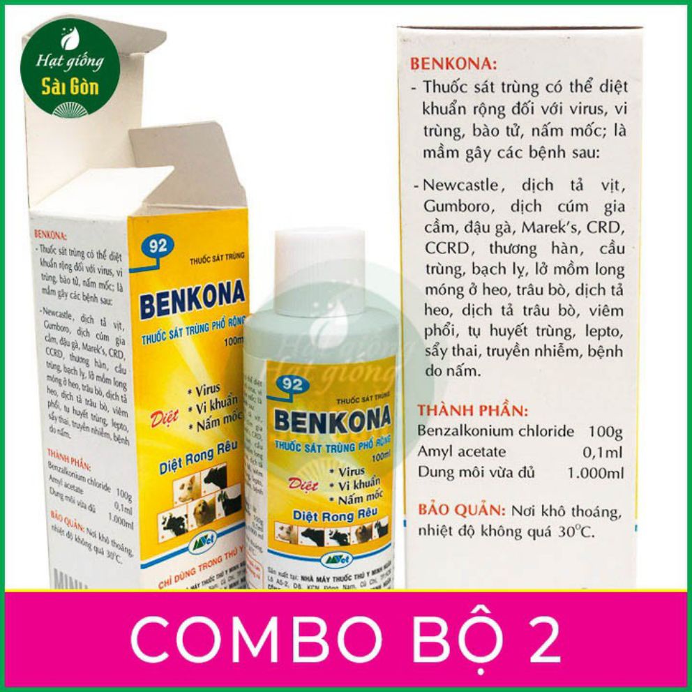 Benkona sát khuẩn phổ rộng, combo 2 lọSản phẩm với tên thương mại là BENKONA. Có hai thành phần chính gồm: