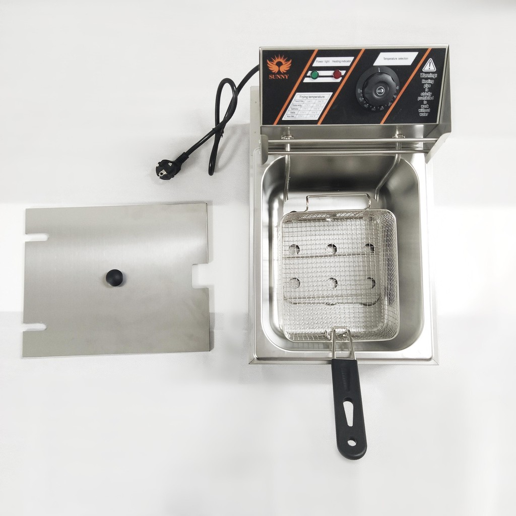 - Bếp chiên nhúng đơn công nghiệp là một thiết bị chuyên dụng để chiên: Khoai tây, khoai tây lốc xoáy, thịt gà, cá viên, xúc xích, gà rán, pho mai que, cánh gà, đùi gà... sử dụng điện cho khả năng làm chín thực phẩm trong khoảng thời gian rất ngắn.- Bạn có thể điều chỉnh nhiệt độ từ 0 - 200 độ C để phù hợp nhất với từng loại thực phẩm cũng như từng yêu cầu của món ăn mà bạn muốn.