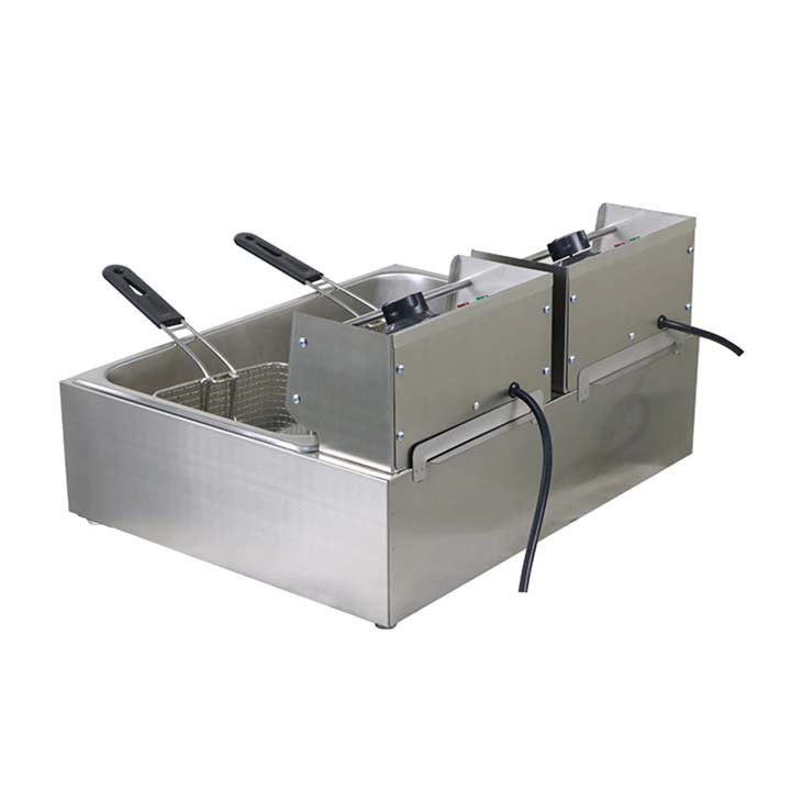 – Bếp chiên nhúng điện đôi 2 giỏ 6X2 lít: bếp chiên khoai tây, chiên gà, đùi gà, cánh gà, xúc xích, thịt bò... Bếp chiên đa năng thiết kế bằng inox không rỉ, có thể tháo rời dễ dàng thuận lợi cho vệ sinh.