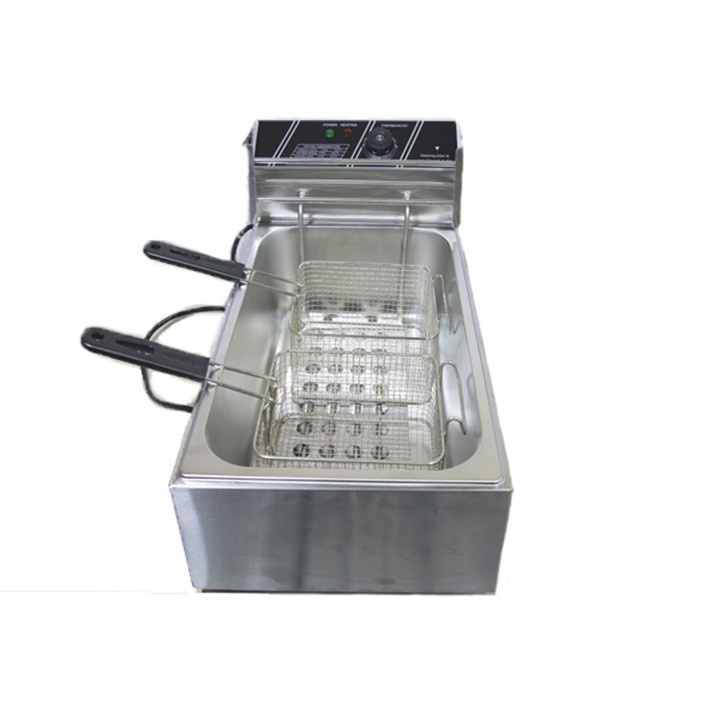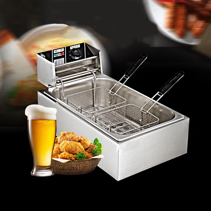 – Bếp chiên nhúng điện đôi 12 lít: bếp chiên khoai tây, chiên gà, đùi gà, cánh gà, xúc xích, thịt bò... Bếp chiên đa năng thiết kế bằng inox không rỉ, có thể tháo rời dễ dàng thuận lợi cho vệ sinh.