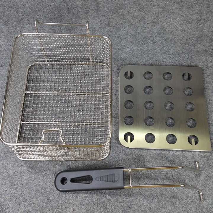 – Bếp chiên nhúng điện đôi 2 giỏ 6X2 lít: bếp chiên khoai tây, chiên gà, đùi gà, cánh gà, xúc xích, thịt bò... Bếp chiên đa năng thiết kế bằng inox không rỉ, có thể tháo rời dễ dàng thuận lợi cho vệ sinh.