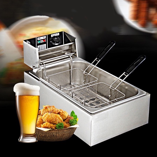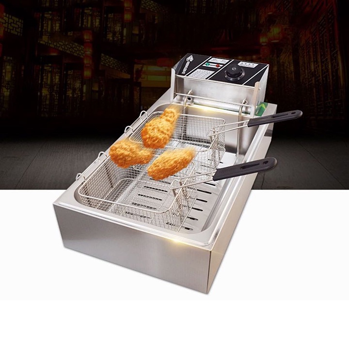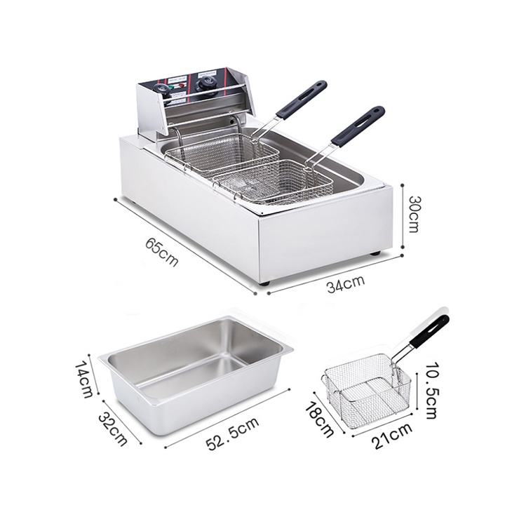 Bếp chiên nhúng đôi có thể coi là loại bếp chiên điện được các cửa hàng, nhà hàng, quán bán đồ ăn vặt lựa chọn đầu tiên để dùng chiên, rán các món ăn nhanh như: Mực, tôm, cá, bò, thịt xiên, khoai, gà rán,..- Thông số kỹ thuật bếp chiên đôi: