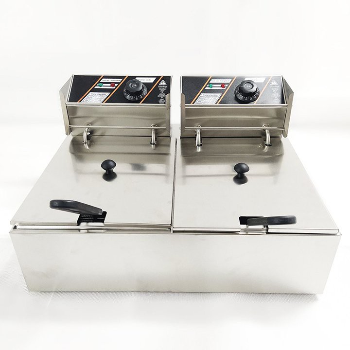 – Bếp chiên nhúng điện đôi 2 giỏ 6X2 lít: bếp chiên khoai tây, chiên gà, đùi gà, cánh gà, xúc xích, thịt bò... Bếp chiên đa năng thiết kế bằng inox không rỉ, có thể tháo rời dễ dàng thuận lợi cho vệ sinh.