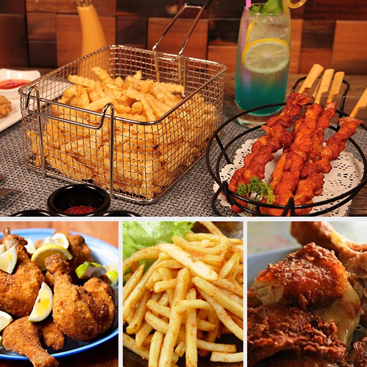 – Bếp chiên nhúng điện đôi 12L: bếp chiên khoai tây, chiên gà, đùi gà, cánh gà, xúc xích, thịt bò... Bếp chiên đa năng thiết kế bằng inox không rỉ, có thể tháo rời dễ dàng thuận lợi cho vệ sinh.