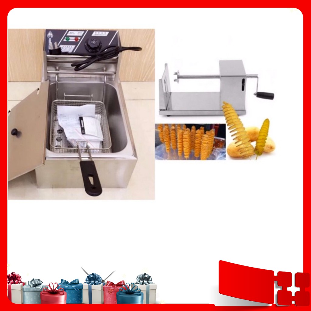 Bếp chiên nhúng điện+ máy cắt khoai tây lốc xoáy