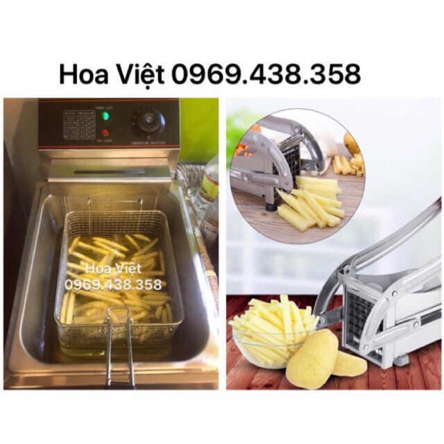 Bếp chiên nhúng điện và máy cắt khoai tây sợi 2 cỡ dao