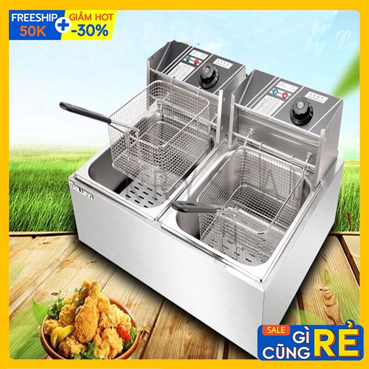 – Bếp chiên nhúng điện đôi 2 giỏ 6X2 lít: bếp chiên khoai tây, chiên gà, đùi gà, cánh gà, xúc xích, thịt bò... Bếp chiên đa năng thiết kế bằng inox không rỉ, có thể tháo rời dễ dàng thuận lợi cho vệ sinh.