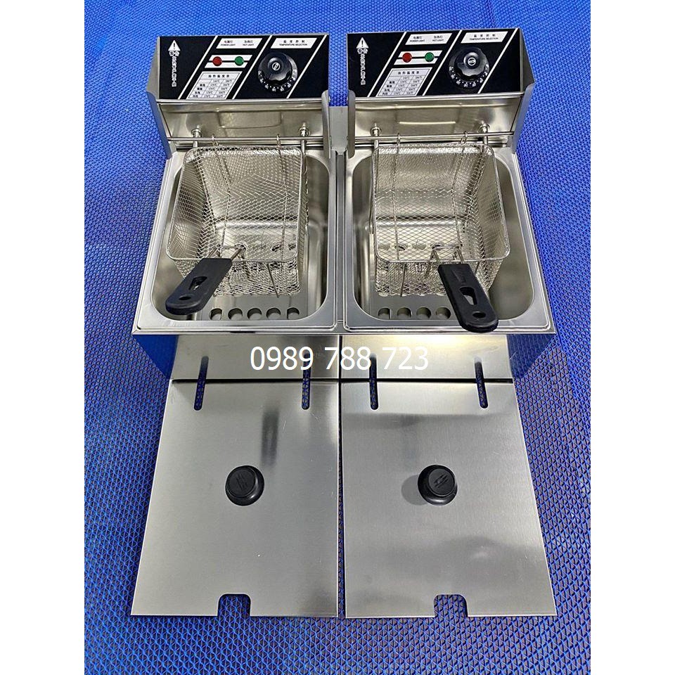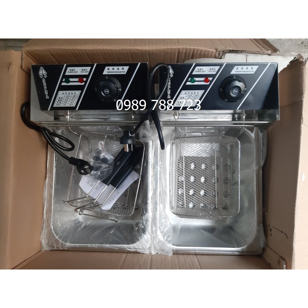 – Bếp chiên nhúng điện đôi 2 giỏ 6X2 lít: bếp chiên khoai tây, chiên gà, đùi gà, cánh gà, xúc xích, thịt bò. Bếp chiên đa năng thiết kế bằng inox không rỉ, có thể tháo rời dễ dàng thuận lợi cho vệ sinh.