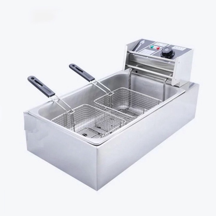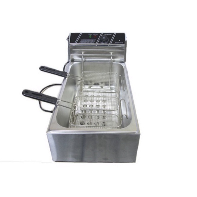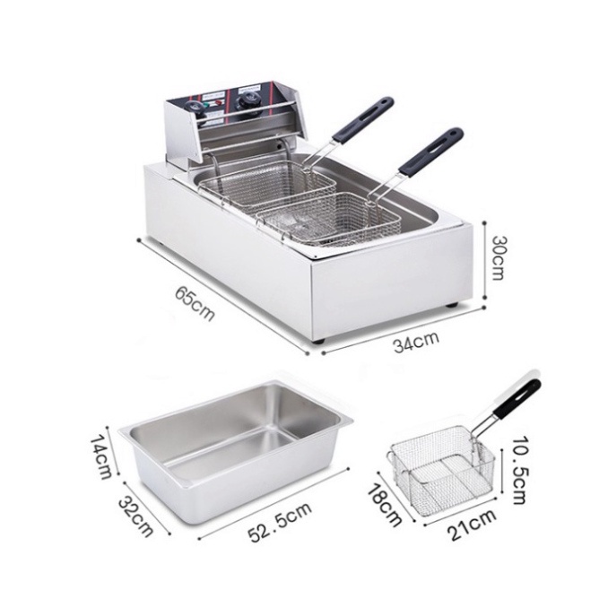 – Bếp chiên nhúng điện đôi 12L: bếp chiên khoai tây, chiên gà, đùi gà, cánh gà, xúc xích, thịt bò... Bếp chiên đa năng thiết kế bằng inox không rỉ, có thể tháo rời dễ dàng thuận lợi cho vệ sinh.
