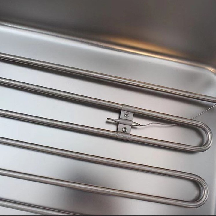 – Bếp chiên nhúng điện đôi 12 lít: bếp chiên khoai tây, chiên gà, đùi gà, cánh gà, xúc xích, thịt bò... Bếp chiên đa năng thiết kế bằng inox không rỉ, có thể tháo rời dễ dàng thuận lợi cho vệ sinh.