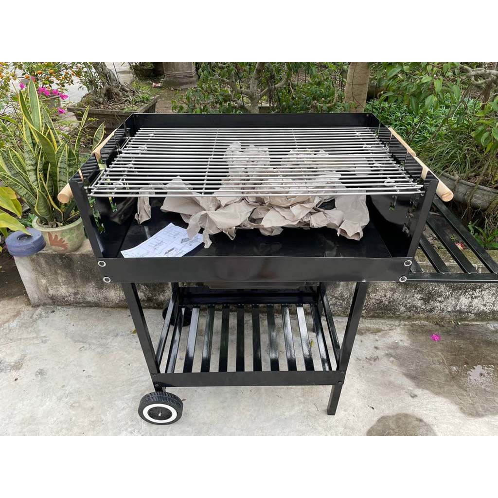 Bếp nướng này có 1 kệ phía dưới to và 1 kệ bên trên nhỏ rất thuận thiện cho việc để thực phẩm sống và thực phẩm chín.
