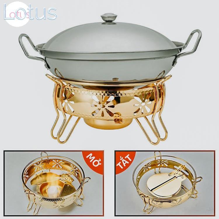 * Ưu điểm của sản phẩm bếp cồn- Thiết kế nhỏ gọn, mạ vàng sang trọng