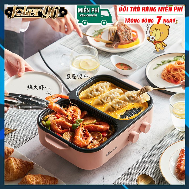 Bếp điện BEAR nướng lẩu 2 trong 1 đa năng [Chính hãng] Bếp nồi vừa nướng vừa lẩu 2 ngăn nồi nấu lẩu nướng điện đa năng