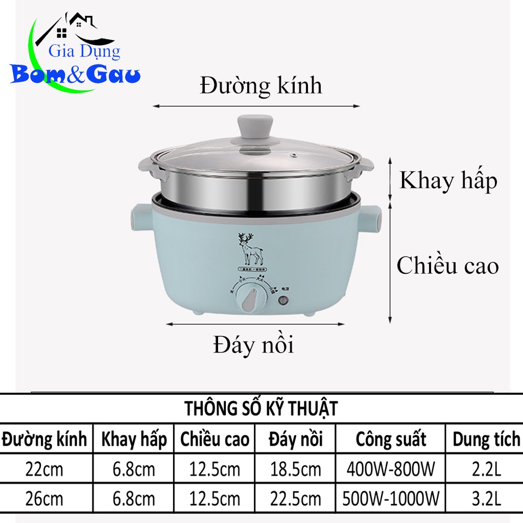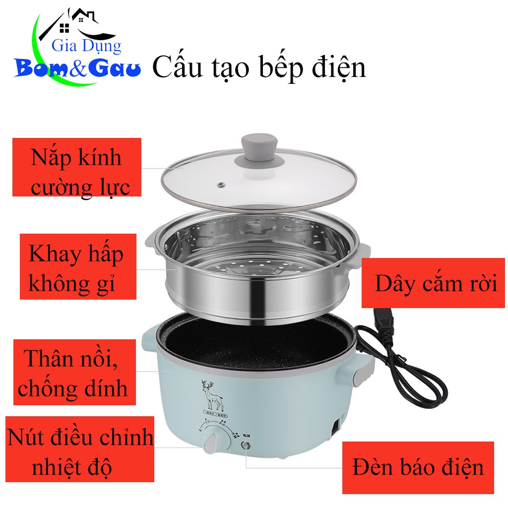 Bếp Điện Đa Năng, Nồi Lẩu Chống Dính Cao Cấp Kèm Xửng Hấp, Tay Cầm Cách Nhiệt Dung Tích Lớn Tặng Kèm 7 Món Tiện Lợi BĐAR05*** Thông tin sản phẩm:
