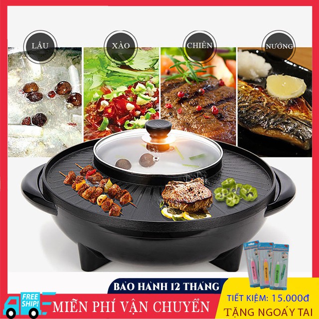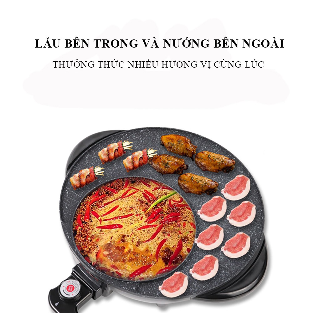 Bếp điện đa năng, nồi lẩu điện đa năng 2 trong 1 làm nóng nhanh, 5 mức điều chỉnh nhiệt, chống dính dễ rửa sạch