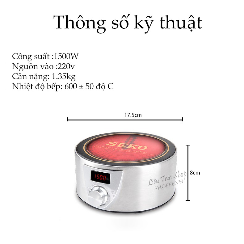 Kích thước bếp: Hình tròn đường kính 17.5cm , cao 8cm.