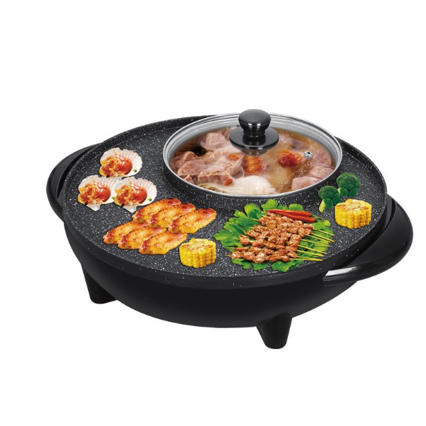 Bếp Điện Lẩu Nướng Tròn Nồi lẩu nướng 2 in 1 Đa năng Chống Dính