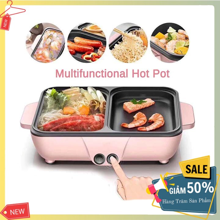 Nhà cửa & Đời sống > Dụng cụ nhà bếp > Lò nướng & phụ kiện || Bếp Điện Mini 2 Ngăn, Nồi Lẩu Nướng Đế Chống DínhCòn hàng