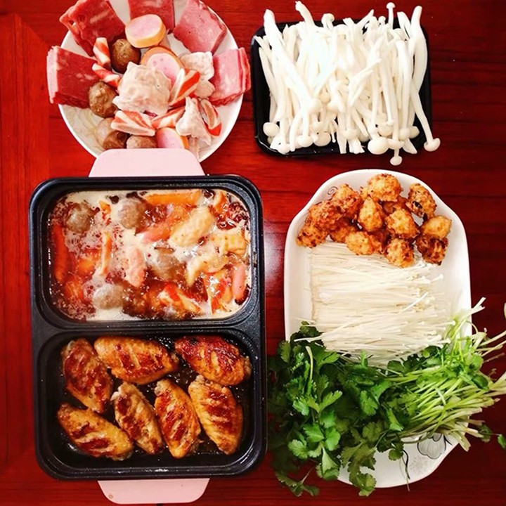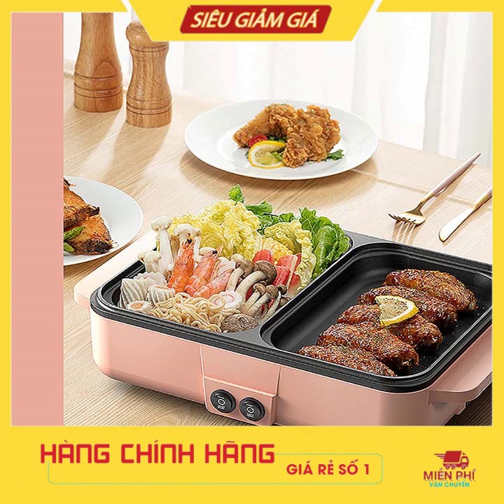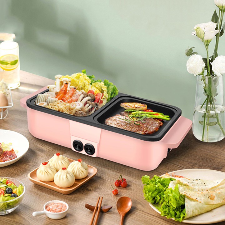 Nhà cửa & Đời sống > Dụng cụ nhà bếp > Lò nướng & phụ kiện || Bếp Điện Mini 2 Ngăn, Nồi Lẩu Nướng Đế Chống DínhCòn hàng