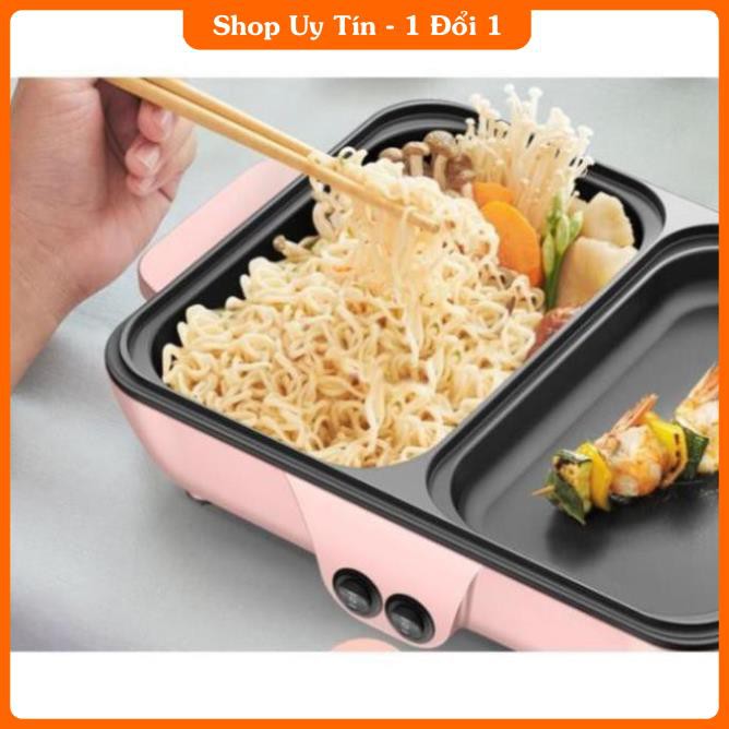 Bếp Điện Mini 2 Ngăn, Đế Chống Dính | Công Dụng 5 Trong 1 Có Thể Vừa Ăn Nướng, Vừa Ăn LẩuHiện thị trường có rất nhiều loại bếp giá rẻ kém chất lượng, Chỉ có 1 mức nhiệt