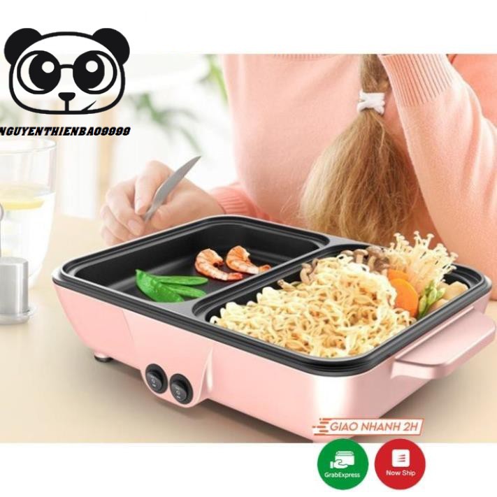 Bếp Điện Mini 2 Ngăn, Đế Chống Dính | Công Dụng 5 Trong 1 Có Thể Vừa Ăn Nướng, Vừa Ăn LẩuHàng có sẵn