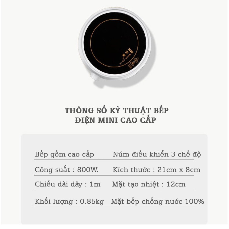 Bếp Điện mini 800w Gốm Ceramic Chống Nước Cao Cấp