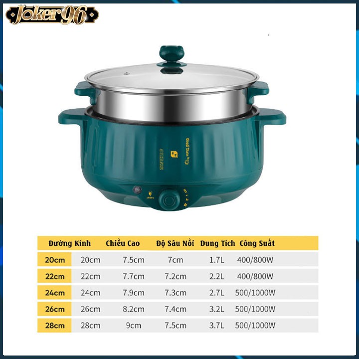 CHI TIẾT SẢN PHẨM- Dung Tích cho các nồi 20-24-26-28cm lần lượt là 1.7-2.7-3.2-3.7L lít