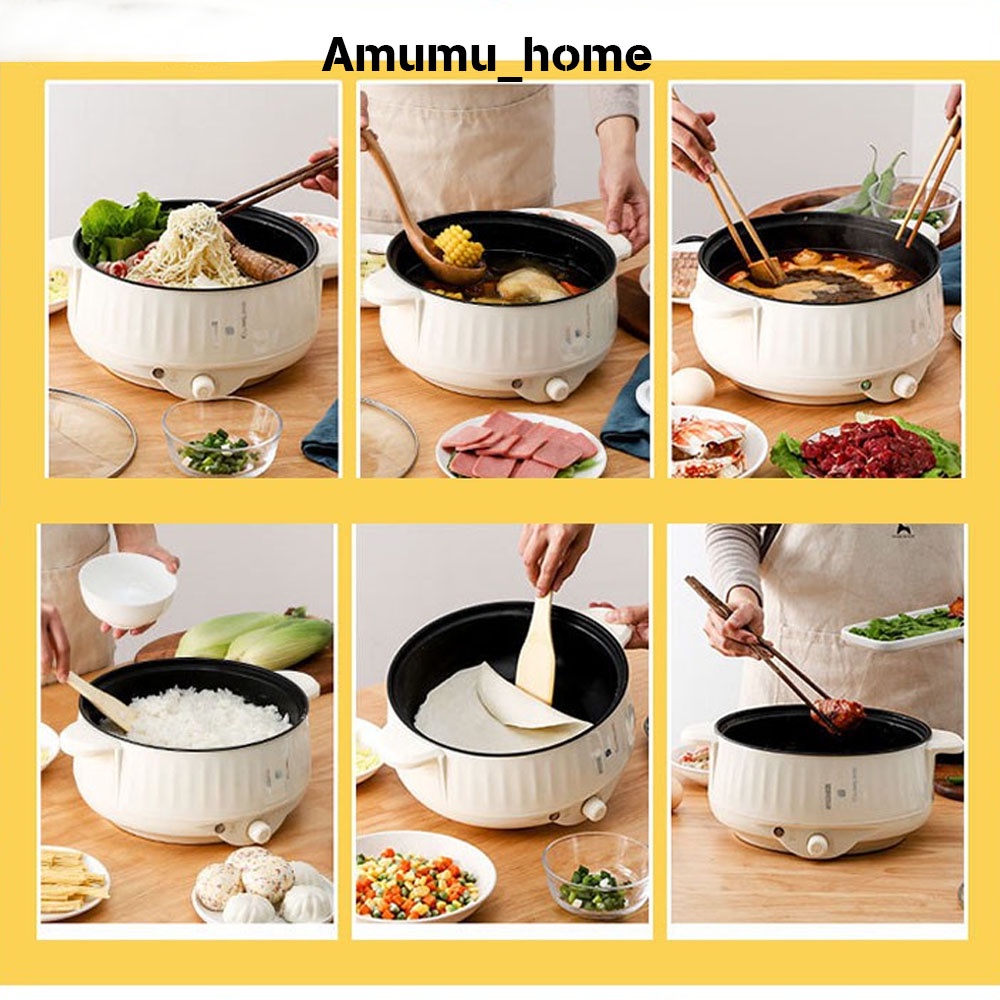 - Nồi lẩu điện mini giúp bạn nhanh chóng có được những món ăn ưa thích như: mỳ phở ăn liền, lẩu, các món kho và luộc, nấu cháo, hâm nóng thức ăn, đun nước, chiên xào...
