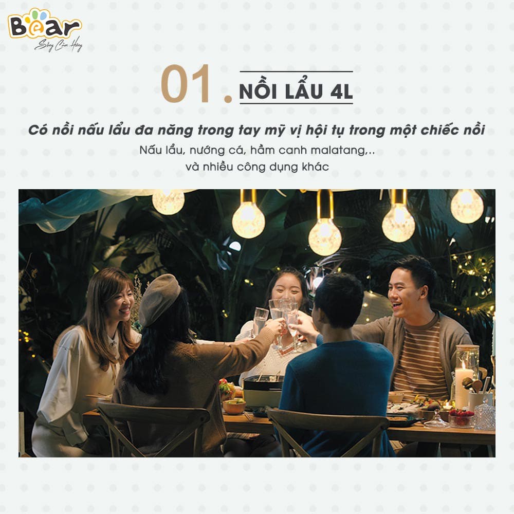 Thiết Bị Điện Gia Dụng > Đồ gia dụng nhà bếp > Nồi nấu đa năng || Bếp điện, nồi nướng lẩu đa năng Bear DHG-C40D5 3 khay tháo rời 1200W , bảo hành 12 thángCòn hàng