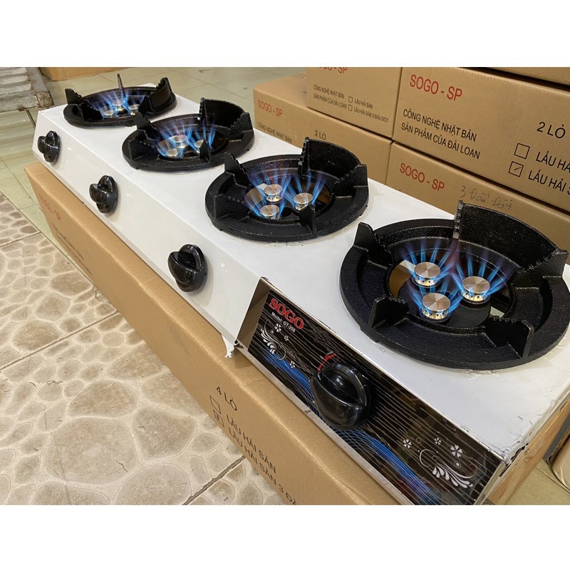 Bếp ga công nghiệp 4 lò Sogo - sản xuất tại Việt Nam xuất khẩu Đài Loan, bảo hành 24 tháng