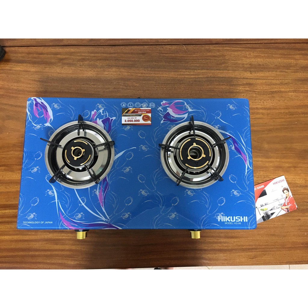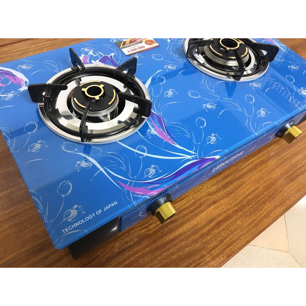 Bếp ga đẹp. Bếp gas mặt kính dày Hikushi công nghệ Nhật Bản.