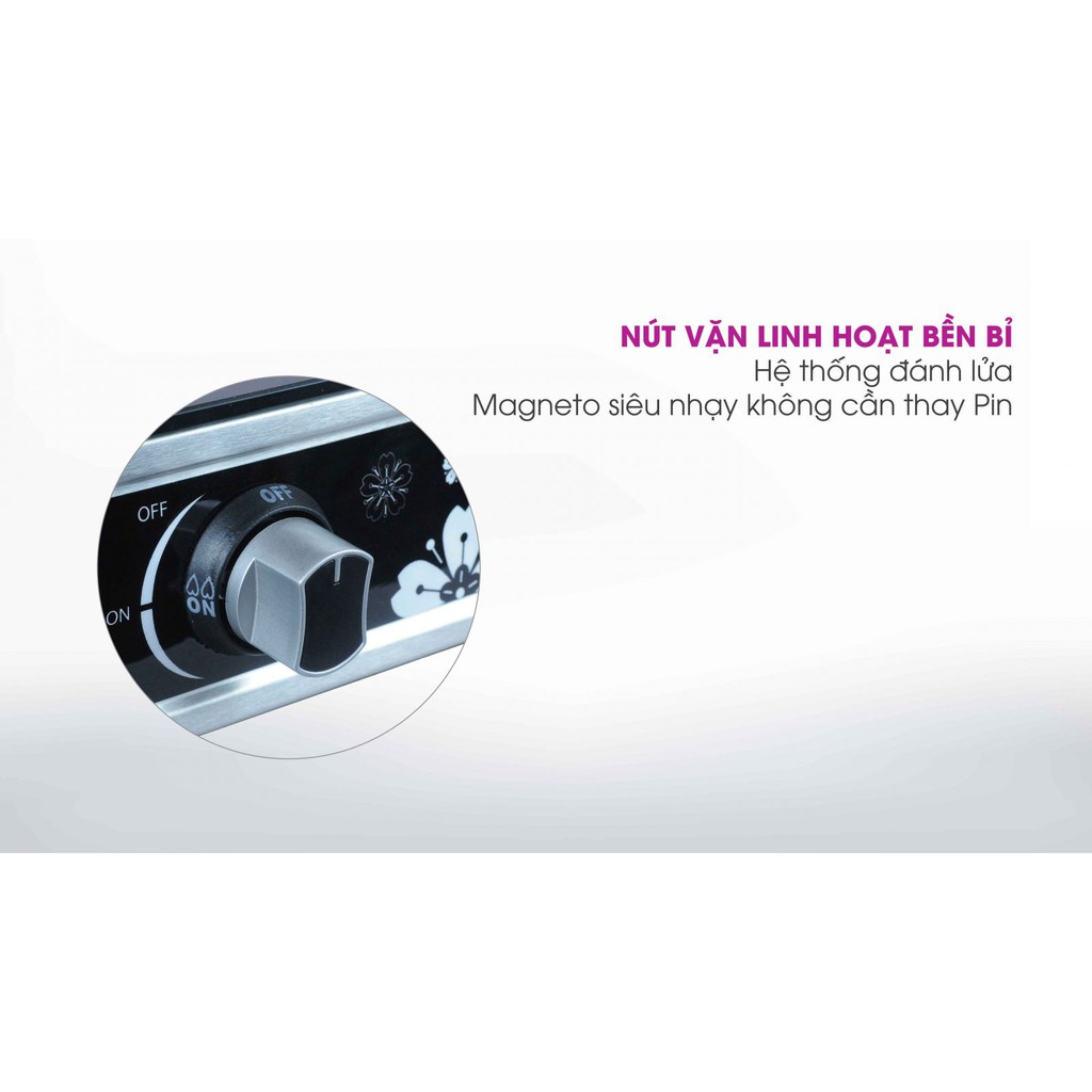 - Sản phẩm có thiết kế nút bật tắt linh hoạt giúp bạn dễ dàng bật tắt và điều chỉnh lửa bằng 2 núm vặn cực nhạy, chỉ cần xoay 1 lần là lửa đã cháy, không cần bật nhiều lần gây rò rỉ và hao phí gas.