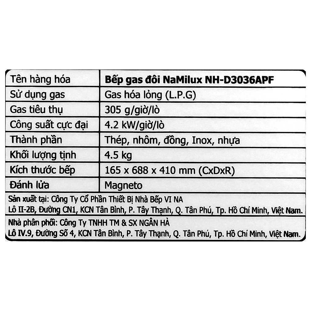 [Mã ELHADEV giảm 4% đơn 300K] Bếp ga Namilux NH-D3036APF