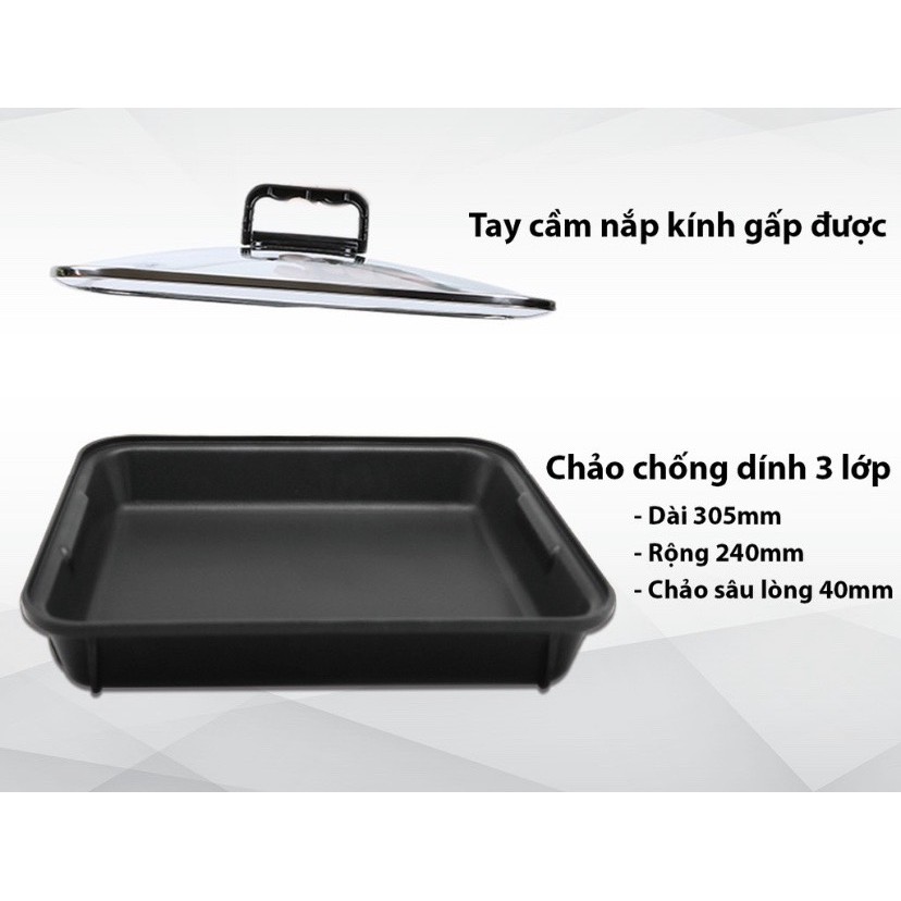 ✓ Chảo sâu lòng chống dính 3 lớp nhôm đúc nguyên khối, cao 40mm phù hợp với rán, nướng hay nấu ăn thường ngày.