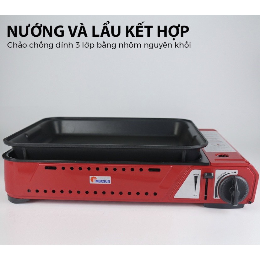 Bếp gas du lịch đa năng Maxsun Hàn Quốc MS-08 (Chính hãng) kèm Chảo chống dính sâu lòng