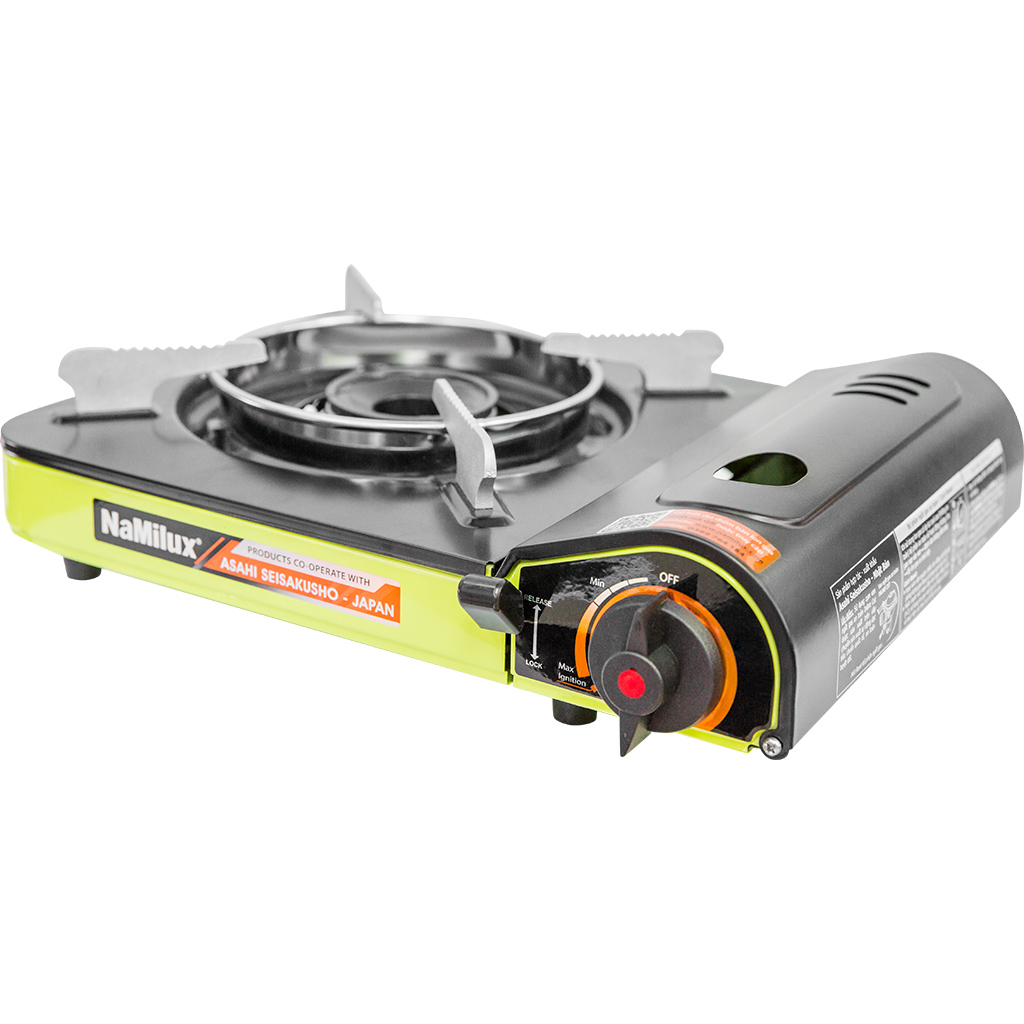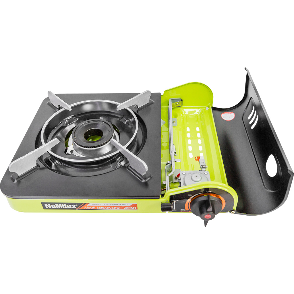 Bếp gas đơn, nhỏ gọn, tiết kiệm không gian Trang bị van Inlinecut, ngắt gas tự động, an toàn khi dùng Hệ thống đánh lửa Magneto cho lửa nhanh, tiết kiệm gas Đầu đốt bằng hợp kim Nhôm có độ bền cao Kiềng và vòng chắn gió bằng Inox, bền bỉ
