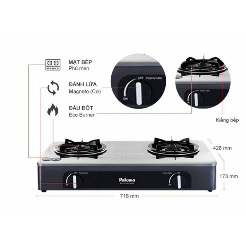 GIỚI THIỆU SẢN PHẨM - BẾP GAS DƯƠNG PALOMA MẶT MEN PA-V71EB