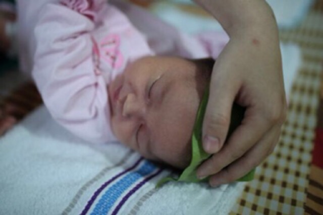 ☘️Hơ lá trầu không cho ấm đặt vào thóp bé, giữ nguyên 10 phút sẽ giúp bé hết nấc cụt.