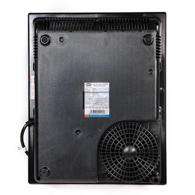 - Dưới mặt bếp được thiết kế cánh quạt tản nhiệt giúp mặt kính nhanh nguội sau khi sử dụng.