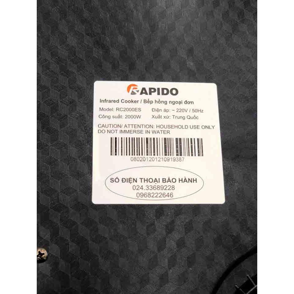 Bếp hồng ngoại Rapido RC2000ES công suất 2000W điều khiển cảm ứng hàng chính hãng bảo hành 12 tháng