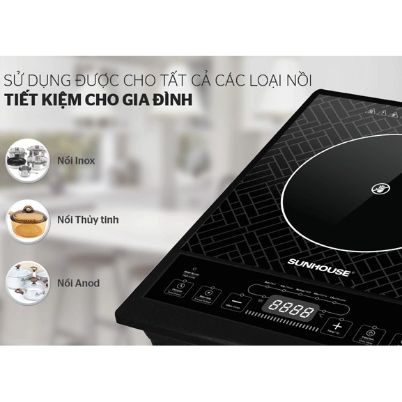 Bếp Hồng Ngoại SUNHOUSE SHD6011 2000W - Tặng Kèm Vỉ Nướng, Sử Dụng Trên Tất Cả Các Loại Nồi