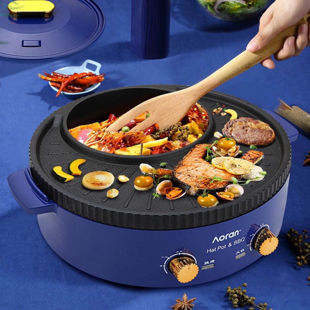 [Mã ELHADEV giảm 4% đơn 300K] Bếp Lẩu Điện AORAN 2 Trong 1, Bếp Lẩu Nướng Đa Năng