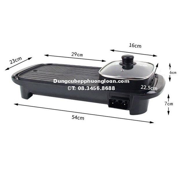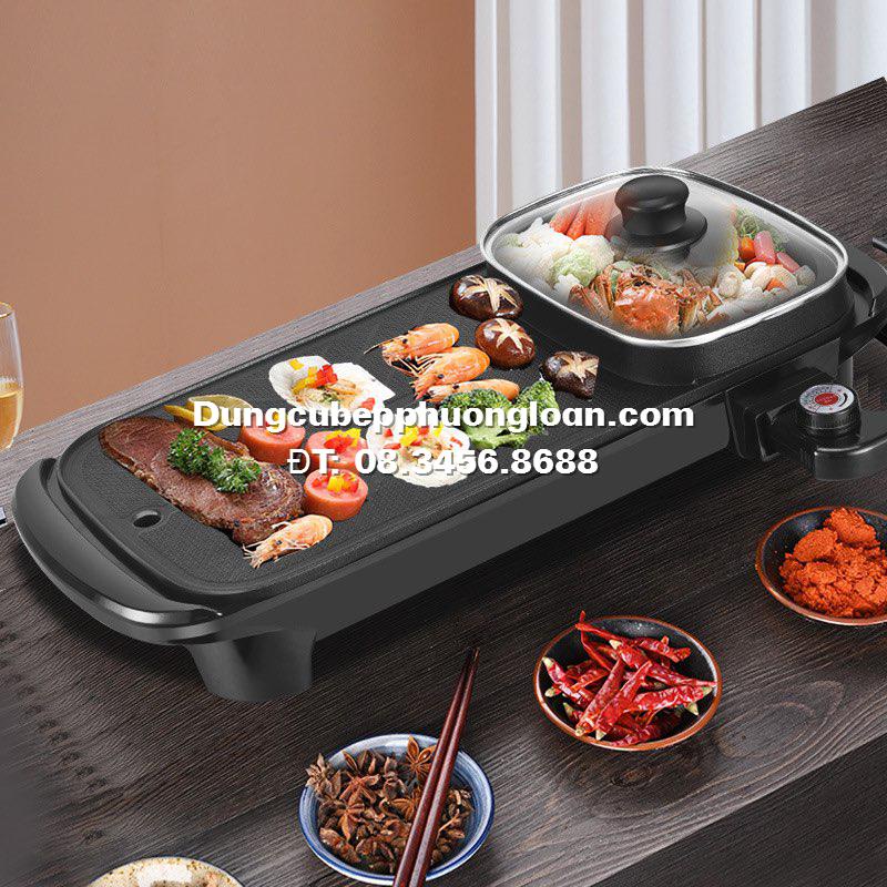 Bếp lẩu điện chữ nhật 2 ngăn, bếp nướng nồi lẩu 2 in 1 siêu chống dính 2462