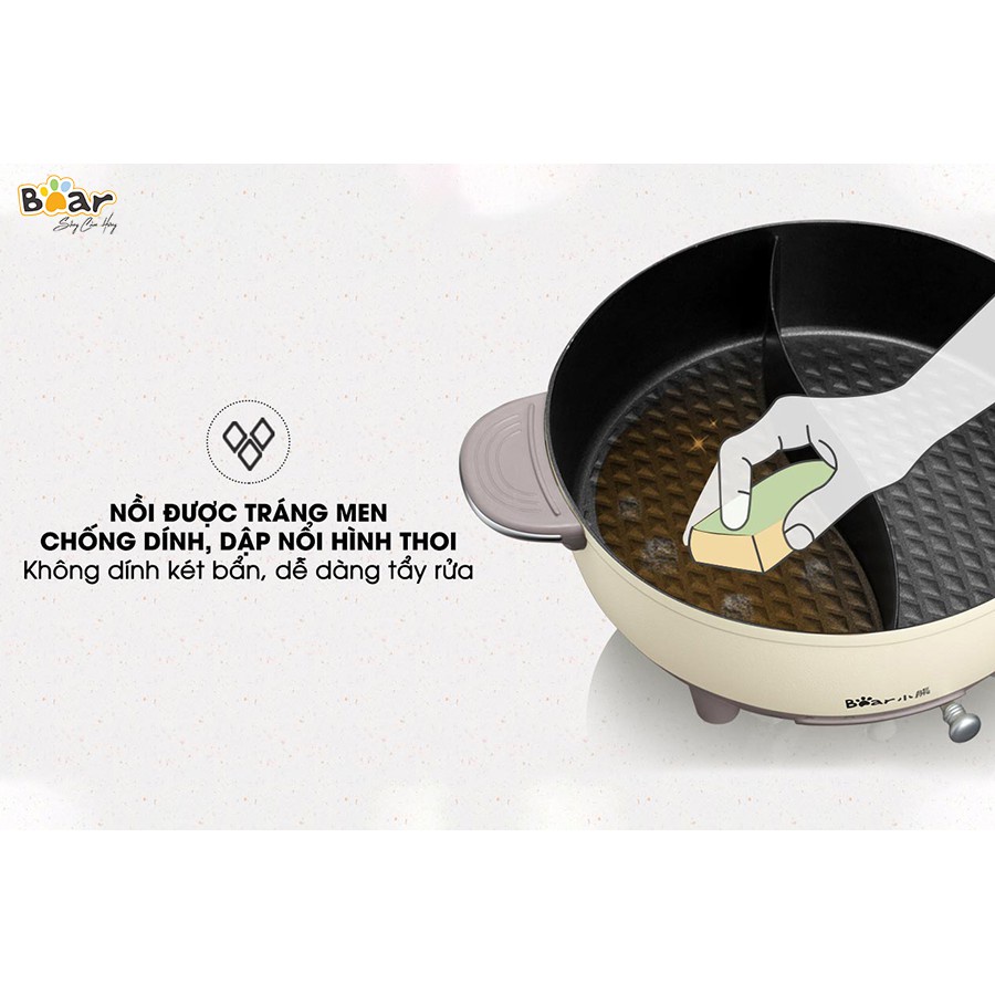 Giới thiệu Bếp Lẩu Điện Mini 2 Ngăn Đa Năng Bear DHG-B60R6 dung tích 6L, Nồi Lẩu Mini Điện Uyên Ương Công Suất 1500w, Bảo hành 18TH