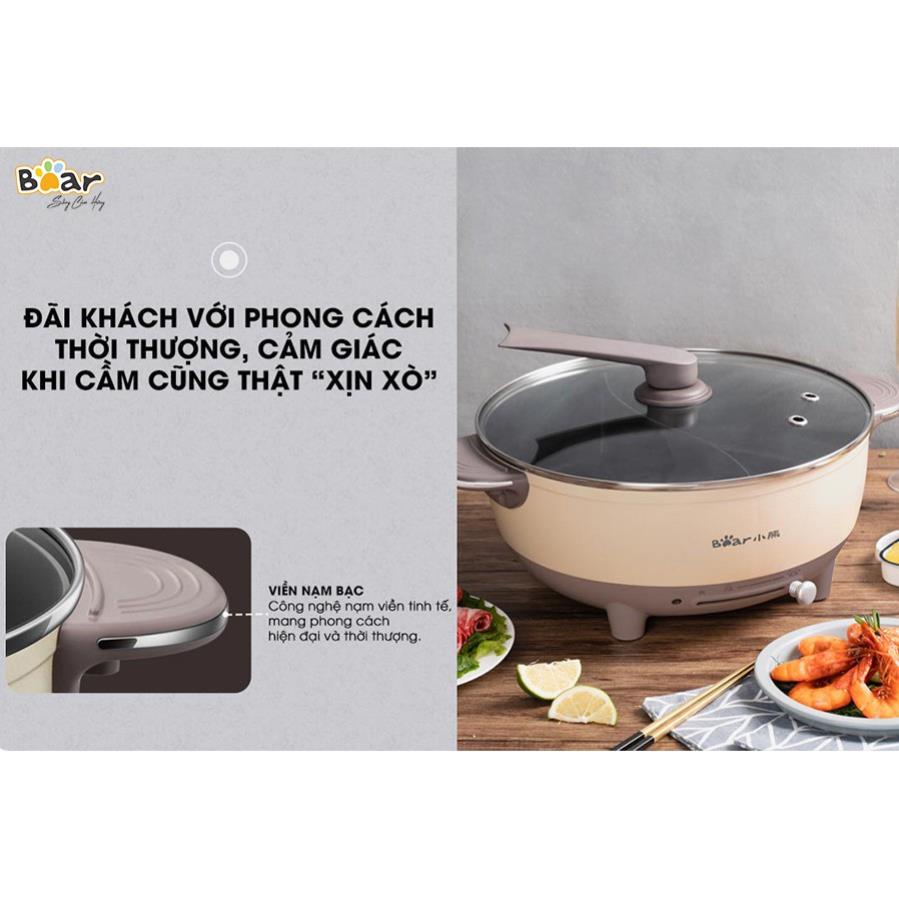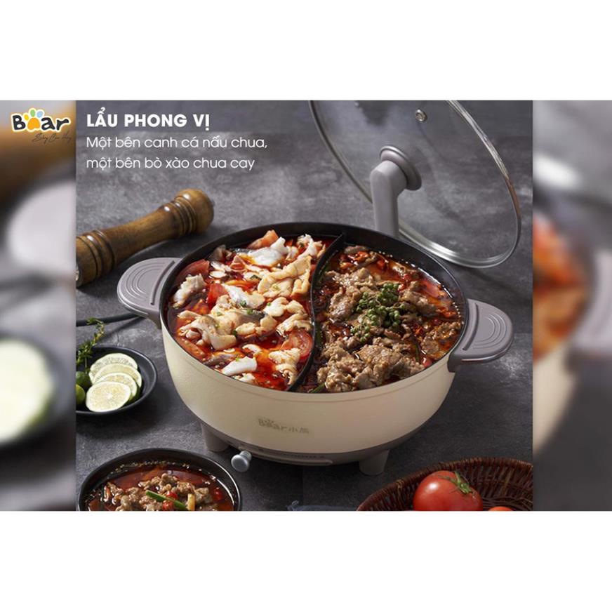 Bếp Lẩu Điện Mini 2 Ngăn Đa Năng Bear DHG-B60R6 dung tích 6L, Nồi Lẩu Mini Điện Uyên Ương Công Suất 1500w, Bảo hành 18TH