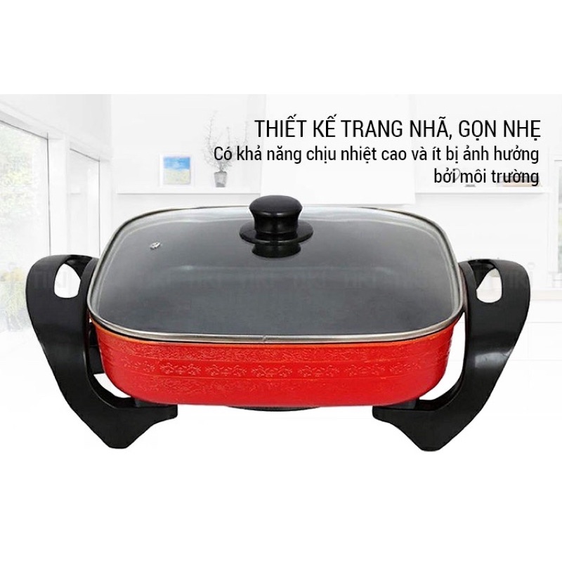 Bếp lẩu điện Nồi lẩu đỏ Chảo lẩu vuông Chống Dính Dung tích 5 Lít Đa năng An toàn Kiểu dáng Hàn Quốc