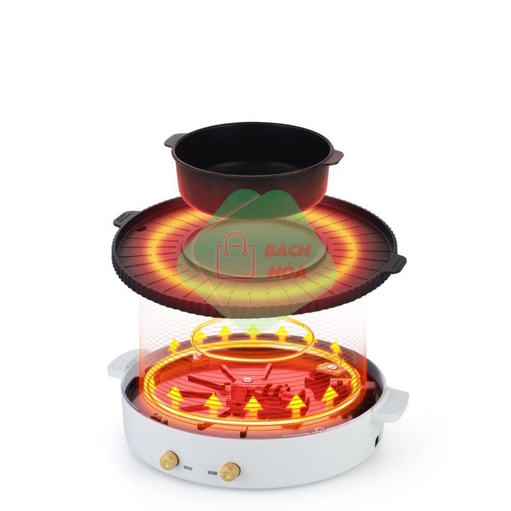 -Hệ thống 2 chức năng tiện dụng, bên trong là lẩu bên ngoài là nướng.