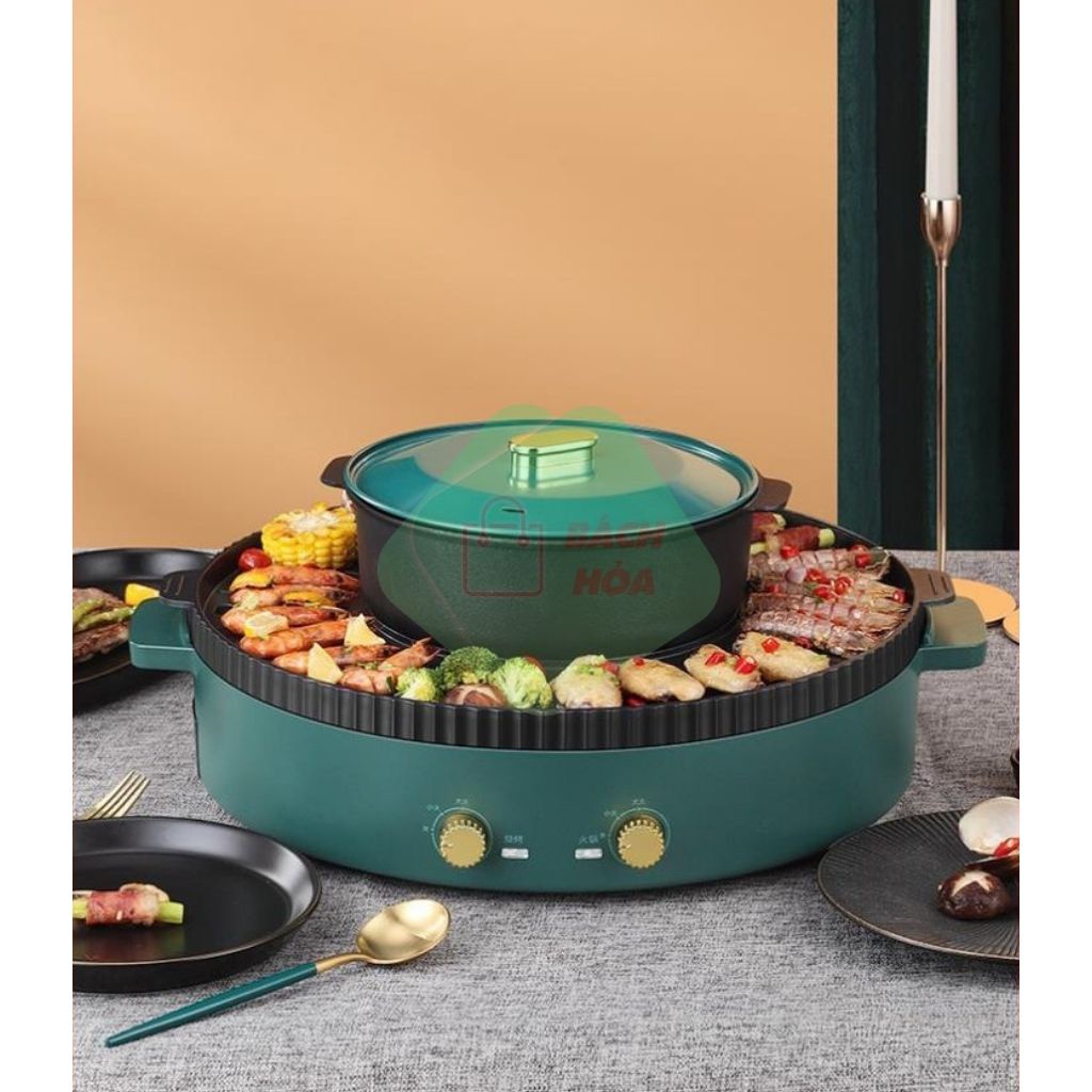 -Thiết kế tích hợp từ 2 chức năng vừa có thể vừa nướng thịt, vừa nấu lẩu một cách nhanh chóng