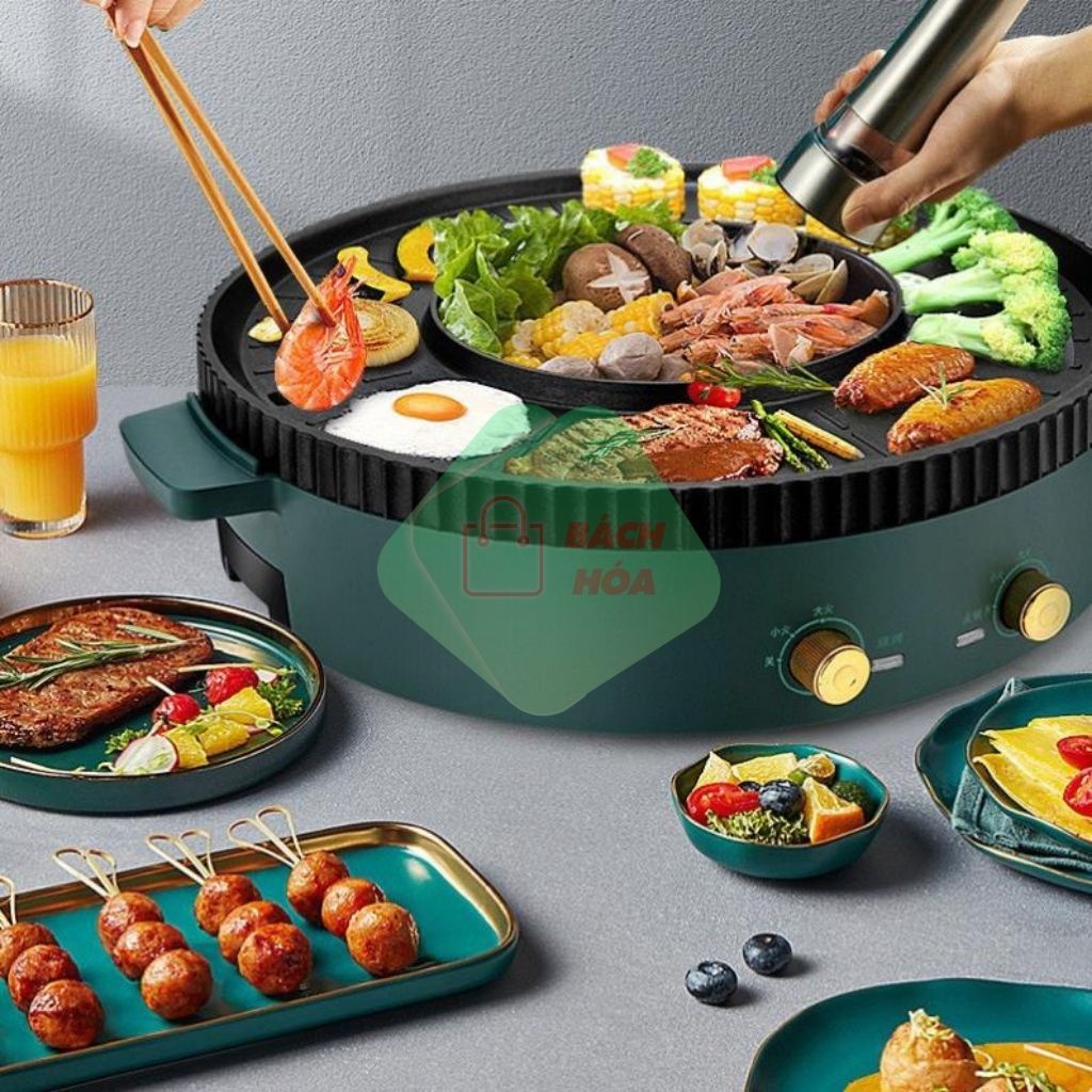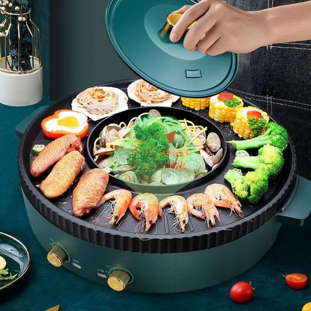 Bếp Lẩu Kiêm Nướng Điện 2in1 Chất Liệu Hợp Kim Cao Cấp,Đa Năng, Tiết Kiệm Điện, Tiện Dụng